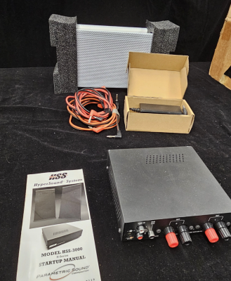 HSS Hypersound System Parametric Sound Speakers HSS3000 	2x speaker, 1x amp, 1x powers supply, 2x stereo cable