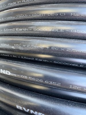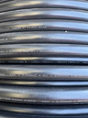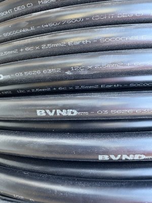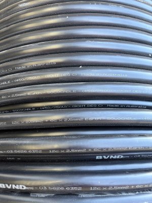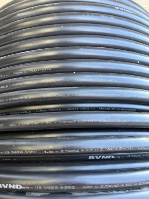 Socopex Cable 19 core 12x19mm2 BVND Australian Made - Large Spool Approx 30-50 Metres New cable 750V Unterminated power cable