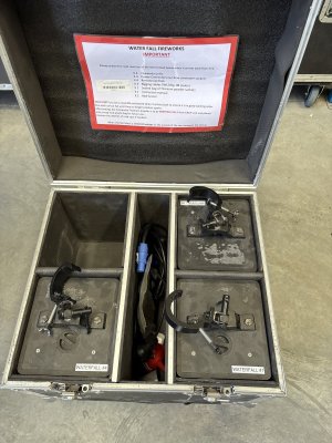 Cold Spark Machines Downward Shoot Set of 3 + 4 Slot Roadcase & Accessories Used ( Waterfall)
